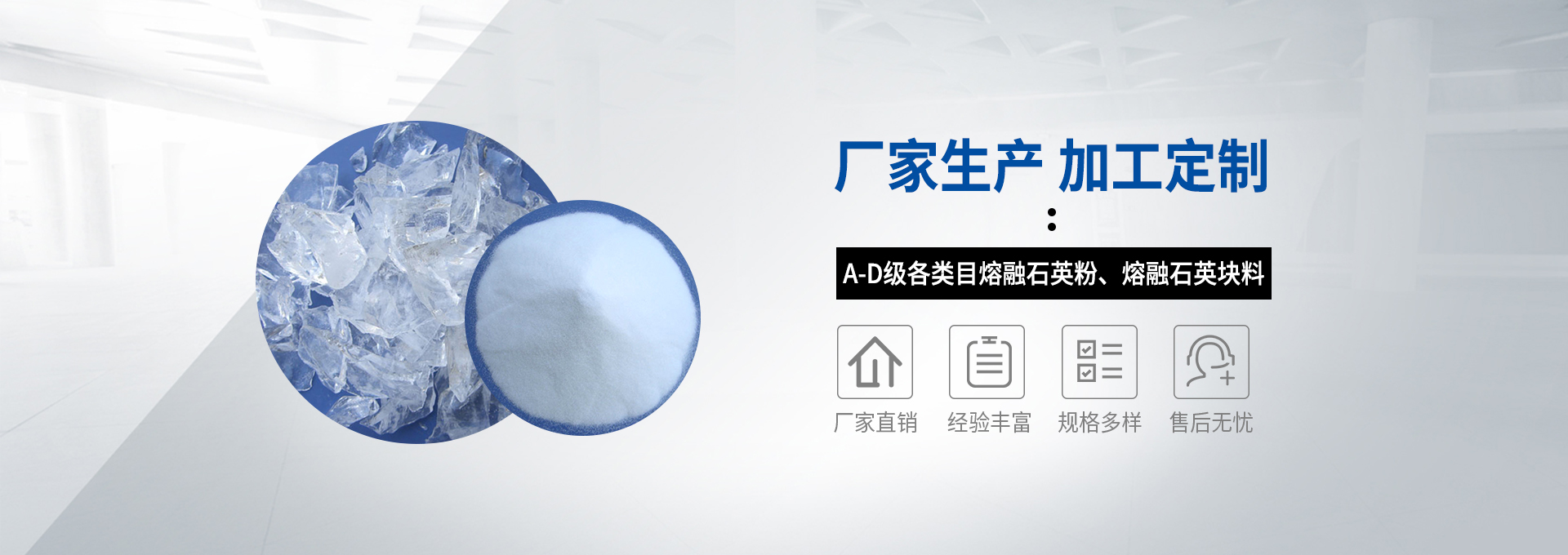 一家集生產、加工、研發、銷售為一體的綜合性民營企業。現擁有熔融石英砂生產線兩條,熔融石英塊料加工生產線兩條,年產各目數熔融石英10000余噸,年產值3000余萬元產品多樣